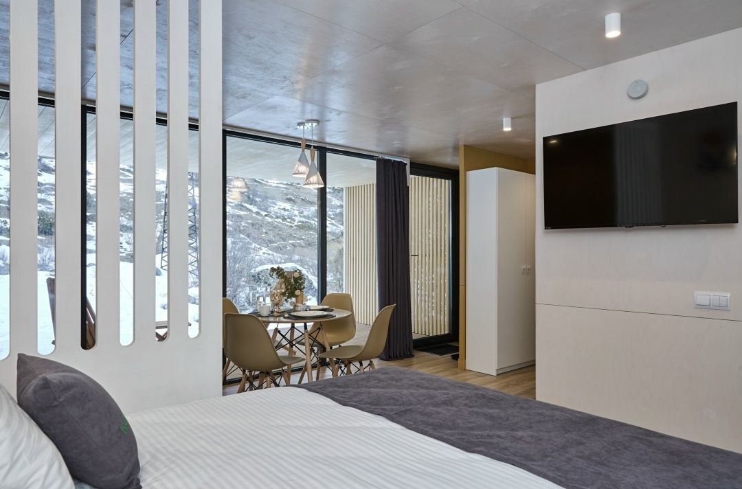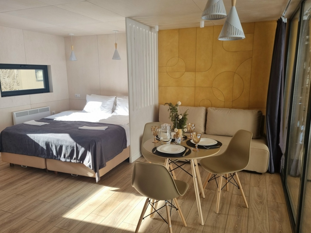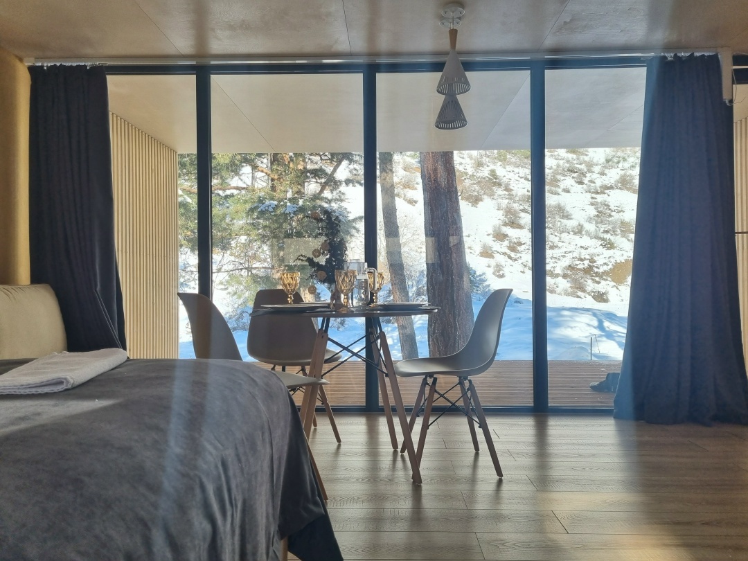 - проживание в трехместных сканди-хаусах с панорамными окнами со всеми удобствами (личной ванной и туалетом, миникухней, вай фай и пр.)